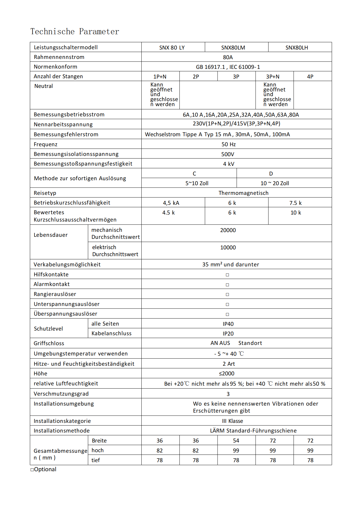 SNX80L Leckage-Schutzschalter ist für Wechselstrom geeignet 50Hz/60Hz Nennspannung 230V/ 415V , Nennstrom von bis 80A Im Stromkreis liegt ein Leckagekontakt vor Es verfügt über Schutzfunktionen wie Strom, Überlast und Kurzschluss, um die persönliche Sicherheit zu gewährleisten und Geräteunfälle durch Leckstrom zu verhindern. Es kann auch zum Schutz von Leitungen vor Überlast und Kurzschluss verwendet werden. Unter normalen Umständen wird es zum seltenen Unterbrechen und Schalten von Leitungen verwendet. Der Nennfehlerstrom -Schutzschalter kann direkten Schutz vor persönlichem Stromschlag bieten.