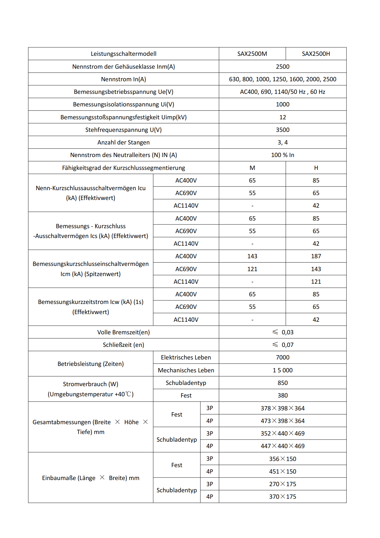 Intelligente Universal-Leistungsschalter der SAX-Serie (im Folgenden als Leistungsschalter bezeichnet) eignen sich für Stromverteilungsnetze mit Wechselstrom 50/60 Hz, einer Nennbetriebsspannung von 400 V bis 1140 V und einem Nennbetriebsstrom von 200 A bis 6300 A. Sie werden zur Verteilung elektrischer Energie verwendet Leitungen schützen Das Gerät ist vor Fehlern wie Überlastung, Kurzschluss, Unterspannung und Erdung geschützt. Der Leistungsschalter verfügt über Kommunikations- und intelligente Schutzfunktionen, die einen selektiven Schutz zwischen oberen und unteren Ebenen genau realisieren, die Zuverlässigkeit der Stromversorgung verbessern und unnötige Stromausfälle vermeiden können. Der Leistungsschalter hat auch eine Trennfunktion.