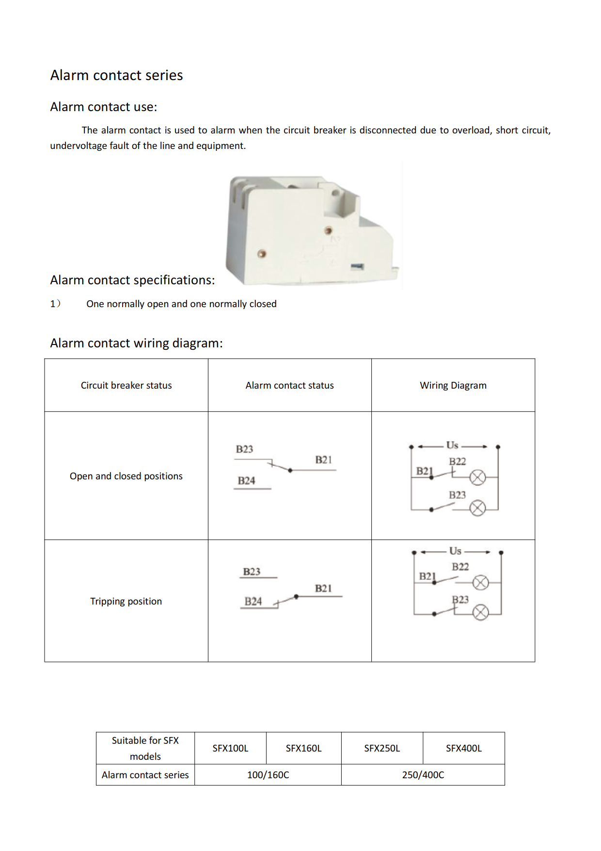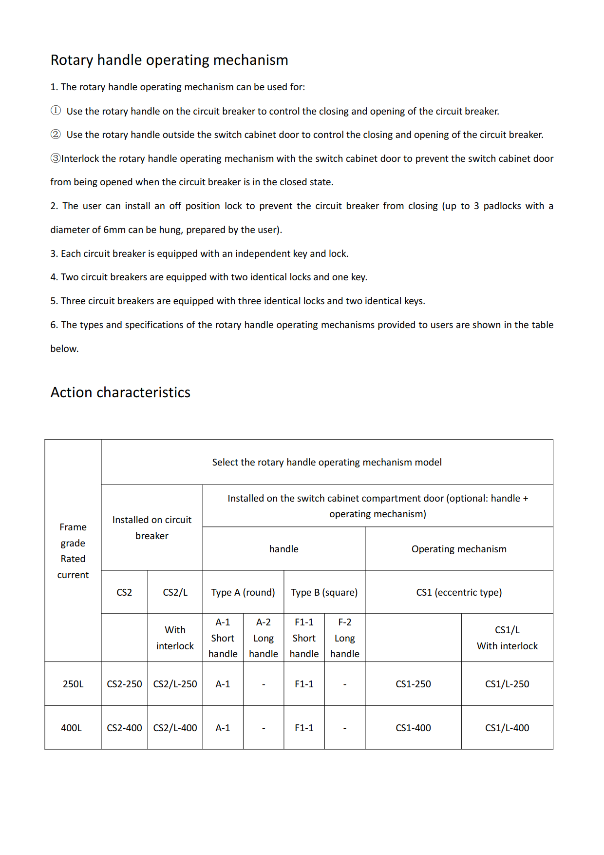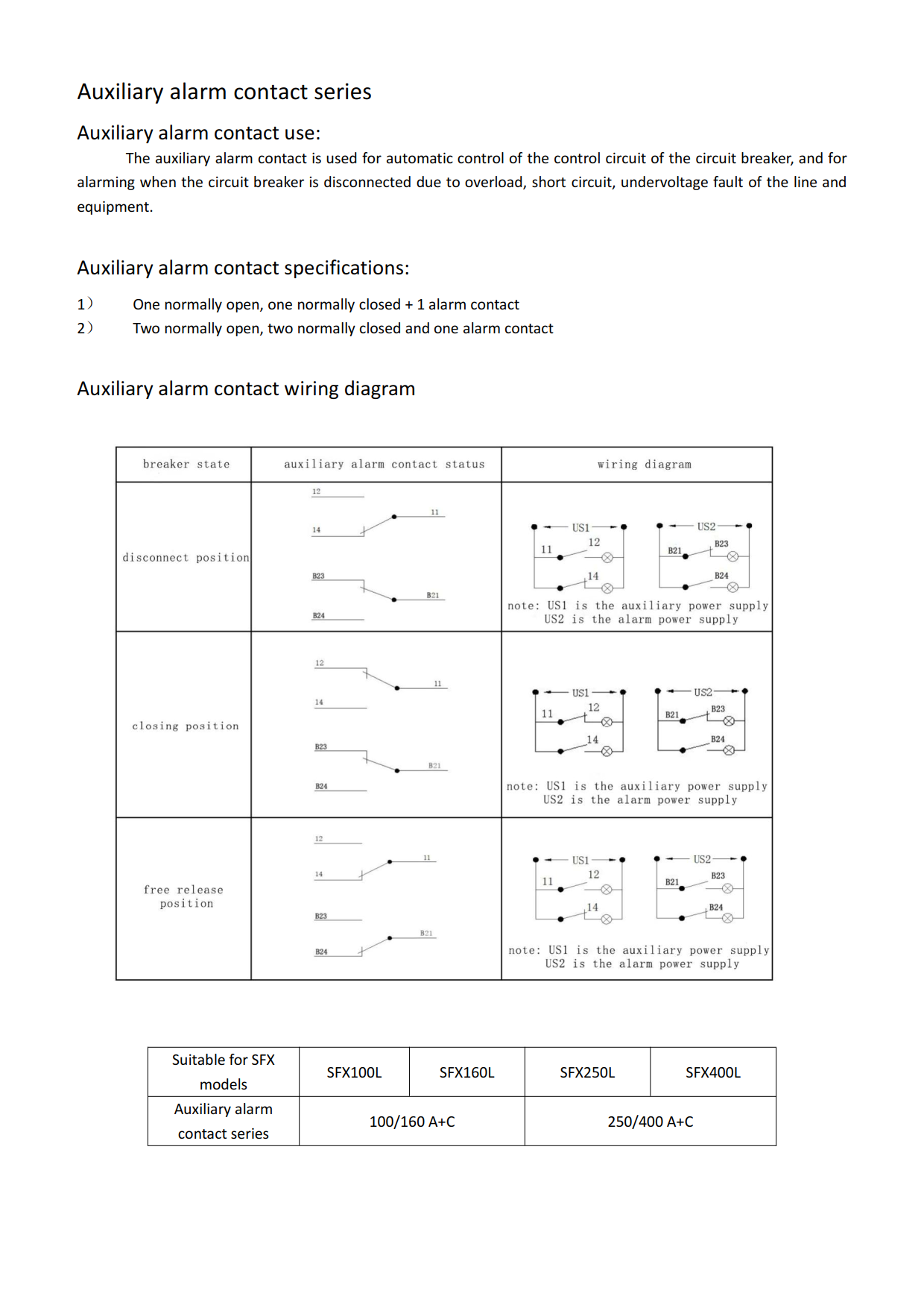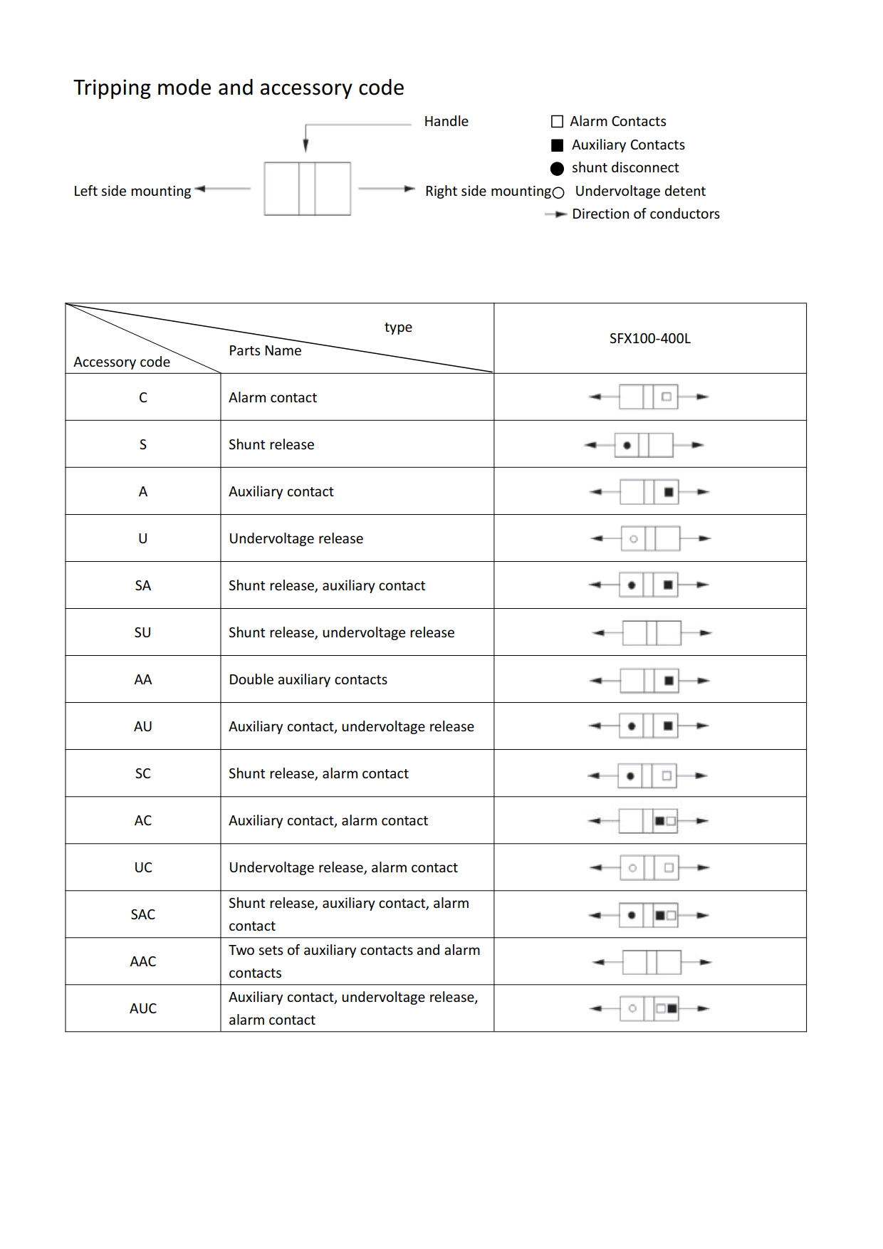 SFX series Residual current operated Circiut-breakers(hereinafter referred to as circuit breakers), SFX series earth leakage circuit breaker (hereinafter referred to as circuit breaker) has a rated insulation voltage of 1000V and is suitable for infrequent conversion and infrequent starting of motor in the circuit with AC 50HZ/60HZ, rated working voltage of 400V and rated working current of 400A. The circuit breaker has overload, short-circuit, under-voltage and residual current protection functions, which can protect the line and power supply equipment from harm, and the circuit breaker has isolation function.