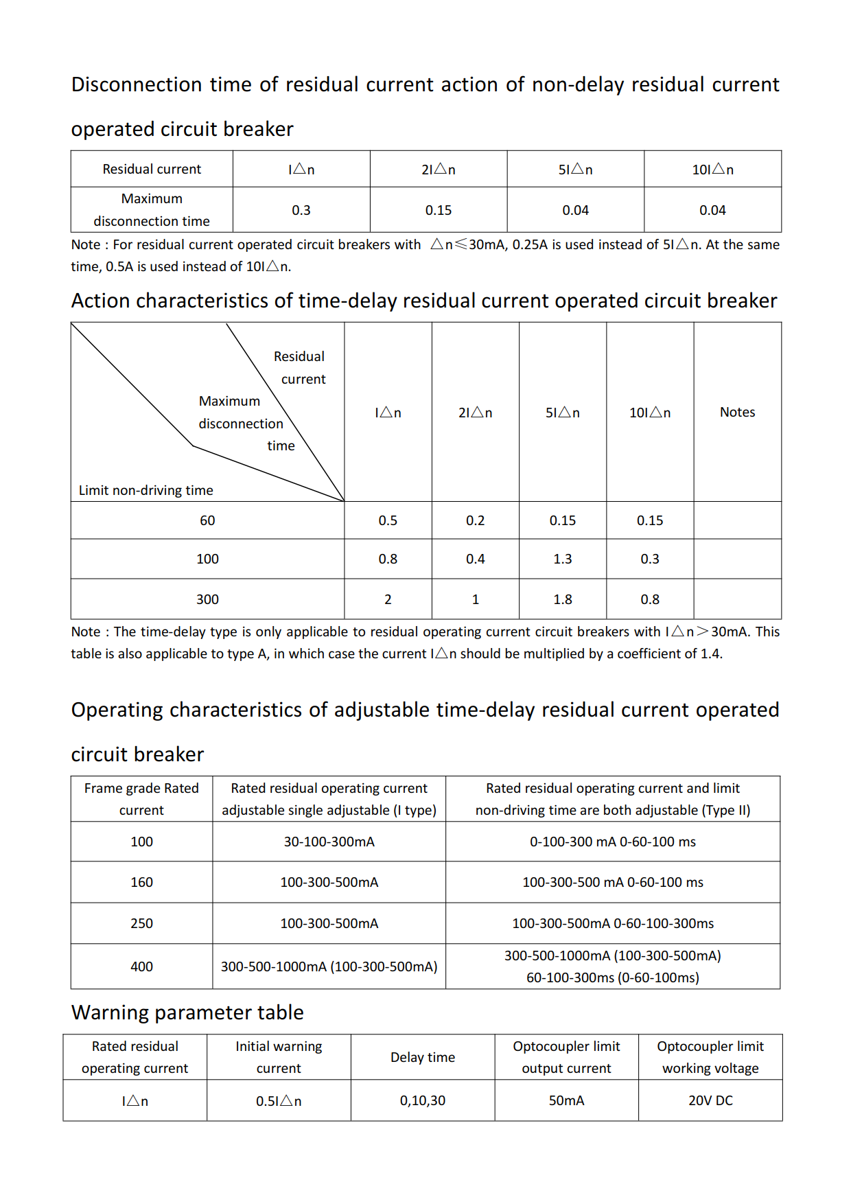 7. On-site adjustable: The rated residual operating current and residual current operating time (non-delay and delayed) can be adjusted on-site according to the actual situation.