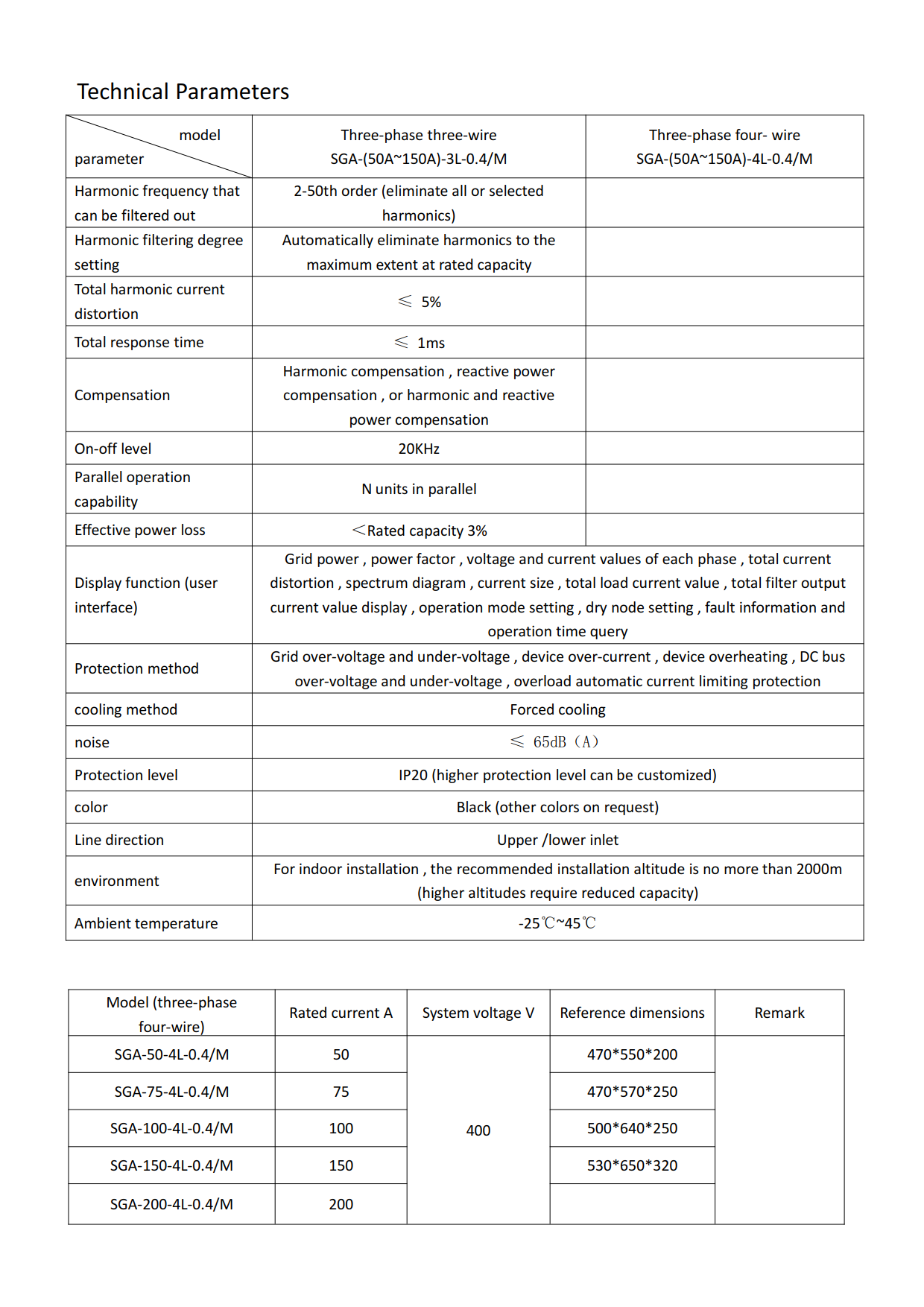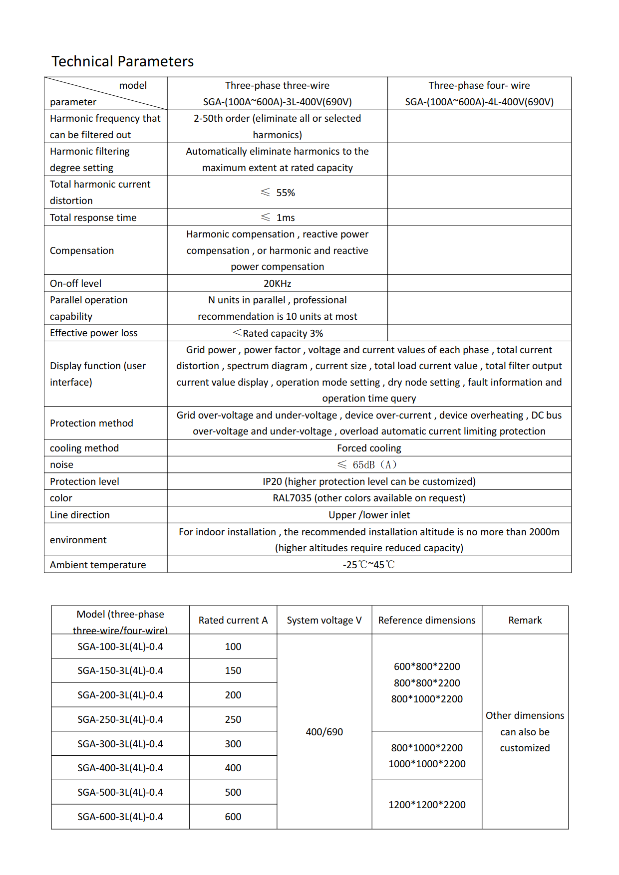 3. Large-capacity compensation capability: The compensation capability of active power filters is limited by the capacity of power modules (IGBTs), making it difficult to compensate for large-capacity harmonics. This product can be connected to cabinets without restrictions, making it possible to compensate for large-capacity harmonics and reducing costs.